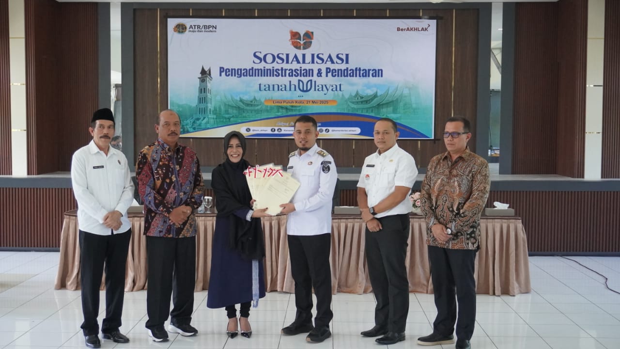 Badan Pertanahan Nasional (BPN) Kabupaten Limapuluh Kota menyerahkan sertifikat hak atas tanah program redistribusi tanah dan Pendaftaran Tanah Sistematis Lengkap (PTSL) kepada masyarakat, Kamis (16/10/2025).